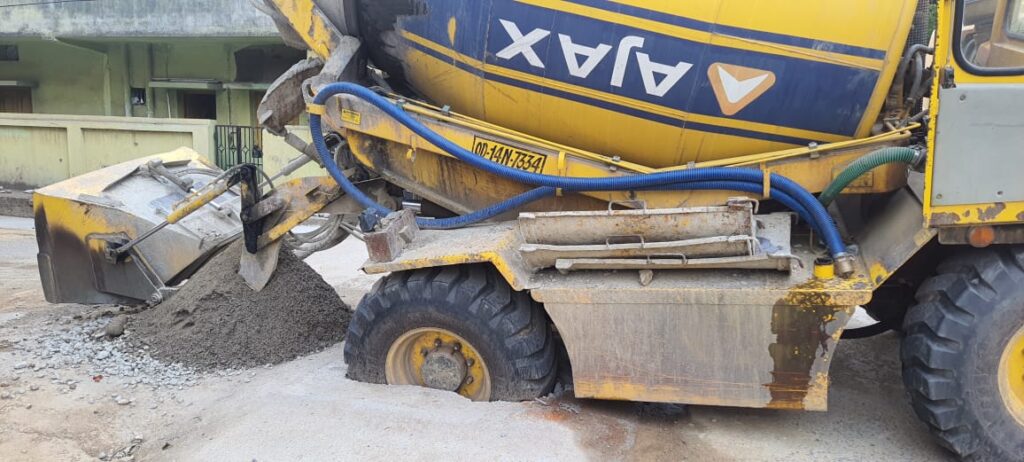 ସ୍ମାର୍ଟ ସିଟିରେ ନିମ୍ନ ମାନର ରାସ୍ତା ନିର୍ମାଣ : ରାସ୍ତା ଧସି ଗାତରେ ପଡ଼ିଲା ଗାଡ଼ି