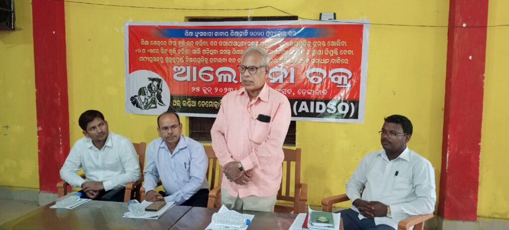 ଶିକ୍ଷା ବିରୋଧି ଜାତୀୟ ଶିକ୍ଷା ନୀତି ସଂପର୍କରେ ଏଆଇଡିଏସ୍ଓ ପକ୍ଷରୁ ଆଲୋଚନା ଚକ୍ର