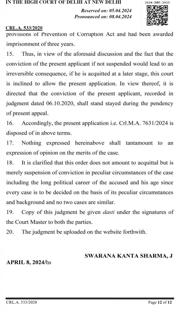 ରାଉରକେଲା ରାଜନୀତି ସୋମବାର ସରଗରମ ହୋଇଛି। ରଉରକେଲାର ପୂର୍ବତନ ବିଧାୟକ ତଥା କେନ୍ଦ୍ରମନ୍ତ୍ରୀ ଦିଲ୍ଲୀପ ରାୟ ନିର୍ବାଚନରେ ଭାଗନେବା ପାଇଁ ଦିଲ୍ଲୀ ଉଚ୍ଚ ନ୍ୟାୟାଳୟରେ କରିଥିବା ଆବେଦନର ଶୁଣାଣୀ କରି ଅଦାଲତ ତାଙ୍କୁ ନିର୍ବାଚନ ଲଢ଼ିବା ପାଇଁ ସୁଯୋଗ ଦେଇଛନ୍ତି। ୨୦୨୦ ମସିହାରେ ଦିଲ୍ଲୀପ ରାୟ କେନ୍ଦ୍ରରେ କୋଇଲା ମନ୍ତ୍ରୀ ଥିବା ସମ୍ପର୍କୀତ ଏକ ମାମଲାରେ ଅଦାଲତ ୩ବର୍ଷ ଦଣ୍ଡ ପାଇଁ ରାୟ ଦେଇଥିଲେ। ଏ ନେଇ ସେତେବେଳେ ଉଚ୍ଚ ଅଦଲାତରେ ଆବେଦନ କରିଥିଲେ ଶ୍ରୀ ରାୟ। ସେହି ମାମଲାର ଶୁଣାଣୀ ଏବେ ମଧ୍ୟ ସରିନାହିଁ। ନିର୍ବାଚନ ବ୍ୟବସ୍ଥା ମୁତାବକ ଅପରାଧିକ ମାମଲାରେ ଦୁଇବର୍ଷରୁ ଅଧିକ ଦୋଷୀ ସାବ୍ୟସ୍ତ ଘଟଣାରେ ଶ୍ରୀ ରାୟ ନିର୍ବାଚନ ଲଢ଼ିବା ସମ୍ଭବ ନଥିଲା। ତେଣୁ ଚଳିତ ସାଧାରଣ ନିର୍ବାଚନରେ ଶ୍ରୀ ରାୟ ରାଉରକେଲାରୁ ଲଢ଼ିବା ପାଇଁ ଆଗ୍ରହୀ ଥିବା ନେଇ ଉଚ୍ଚ ନ୍ୟାୟାଳୟରେ ଏକ ଆବେଦନ କରିଥିଲେ। ଏହି ଆବେଦନକୁ ବିଚାର କରି ବିଚାରପତି ସ୍ୱର୍ଣ୍ଣକାନ୍ତ ଶର୍ମା ଶ୍ରୀ ରାୟଙ୍କୁ ନିର୍ବାଚନ ଲଢ଼ିବାକୁ ଅନୁମତି ଦେଇଛନ୍ତି। ବିଚାରପତି ଶ୍ରୀ ଶର୍ମା ତାଙ୍କର ୧୨ ପୃଷ୍ଟିଆ ରାୟରେ ଶ୍ରୀ ରାୟଙ୍କ ଆବେଦନ ସମ୍ପର୍କୀତ ବିଭିନ୍ନ ଦିଗକୁ ତର୍ଜମା କରିବା ସହ ତାଙ୍କର ବୟଷ ଓ ନିର୍ବାଚନକୁ ଦୃଷ୍ଟିରେ ରଖି ରାୟ ଦେଇଛନ୍ତି। ଶ୍ରୀ ରାୟଙ୍କ ସମ୍ପର୍କୀତ ଅଦାଲତ ଶୁଣାଣୀ ସୂଚନା ମିଳିବା ପରେ ଶ୍ରୀ ରାୟଙ୍କ ସମର୍ଥକମାନେ ଖୁସି ବ୍ୟକ୍ତ କରିଛନ୍ତି।