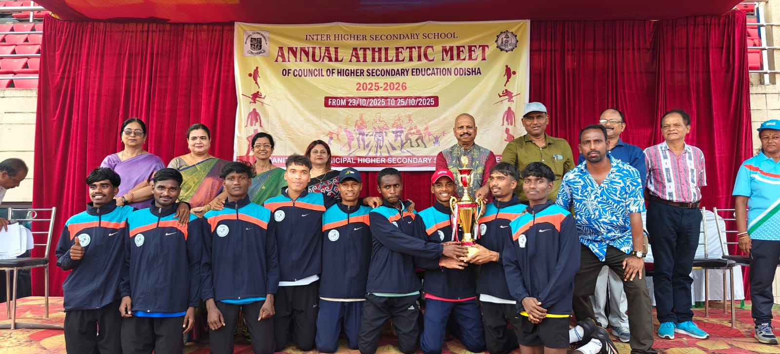 ସେହିଭଳି ଗ୍ରୁପ ଚମ୍ପିୟାନ ବାଳକ ବିଭାଗ ରେ କିସ୍, ଭୁବନେଶ୍ୱର ଏବଂ ଉପବିଜେତା ଭାବେ ଏସଡିଆର୍ଏମ୍ଏନ୍ ସ୍କୁଲ, ସର୍ଗିପାଲ୍ଲୀକୁ ମୁଖ୍ୟ ଅତିଥି ଟ୍ରଫି ପ୍ରଦାନ କରିଥିଲେ l ବାଳିକା ବିଭାଗରେ ଚାମ୍ପିୟନ ହୋଇଥିଲେ ଡିଆର୍ ନୟାପଲ୍ଲୀ, ଭୁବନେଶ୍ୱର ଏବଂ ବାଲିକୁଦା ହାୟର ସେକେଣ୍ଡାରୀ ସ୍କୁଲ୍ ଉପବିଜେତା ଦଳକୁ ଟ୍ରଫି ପ୍ରଦାନ କରାଯାଇଥିଲା l ସମସ୍ତ କାର୍ଯ୍ୟକ୍ରମ ସୁଚାରୁରୂପେ ସମ୍ପନ୍ନ ହୋଇଥିବାରୁ ମ୍ୟୁନିସିପାଲ ହାୟର ସଏକେଣ୍ଡାରୀ ସ୍କୁଲ ର ଅଧକ୍ଷ ହରିହର ଦାଶ ସମସ୍ତଙ୍କୁ ସାଧୁବାଦ ଜଣାଇଥିଲେ l ପରିଶେଷରେ ଲୋକାଲ ଆଡମିନିଷ୍ଟେସନ, ଷ୍ଟାଡିଅମ ଅଧିକାରୀ ଏବଂ ସପୋର୍ଟ ଷ୍ଟାଫ୍ଫ ଙ୍କୁ ମଧ୍ୟ ସାଧୁବାଦ ଜଣାଇଥିଲେ l ତତସହିତ ସମସ୍ତ ଅଫିସିଆଲ, ଏନ୍ସିସି ସ୍ବେଚ୍ଛାସେବୀ, ସୁରଜ ତନ୍ତି ଏବଂ କିରଣ ଏରିକା ଖାଲଖୋ ଙ୍କୁ ମଧ୍ୟ ଧନ୍ୟବାଦ ଅର୍ପଣ କରିଥିଲେ l କଲେଜ ର ସମସ୍ତ ଅଧ୍ୟାପକ, ଅଧ୍ୟାପିକା, କର୍ମଚାରୀ ଯେଉଁ ମାନେ ଏହି ପ୍ରତିଯୋଗିତା ରେ ସାମିଲ ଥିଲେ ସମସ୍ତ ଙ୍କୁ ମଧ୍ୟ ଧନ୍ୟବାଦ ଜଣାଇଥିଲେ l ଶେଷରେ କଲେଜ ର ଦୀପ୍ତି ରଞ୍ଜନ ମହାନ୍ତି ଧନ୍ୟବାଦ ପ୍ରସ୍ତାବ ରଖିଲା ପରେ ପରିଷଦ ର ଅଦକ୍ଷ ବାର୍ଷିକ କ୍ରୀଡ଼ା ପ୍ରତିଯୋଗିତା କୁ ଉଦଯାପିତ ଘୋଷଣା କରିପରିଷଦ ର ପତାକା କୁ କଲେଜ ର ଅଦକ୍ଷ ଙ୍କୁ ପ୍ରଦାନ କରିଥିଲେ l